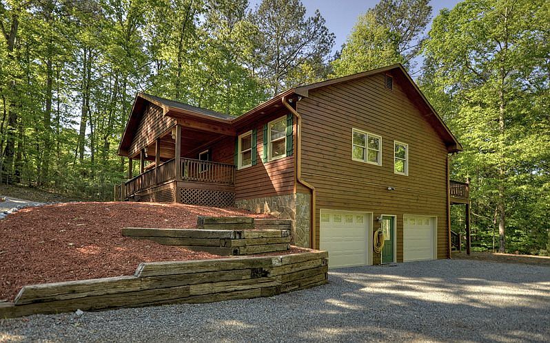 Well maintained 3BR/2BA cabin nestled in wooded setting (.93 acres) with 2 car oversize garage and RV parking. Ranch style cabin w/open concept great room, gas log fireplace, fully equipped kitchen, pantry, hardwood floors, all wood interior & doors opening to screened porch. Split bedroom floorpan, 3BR on main, w/huge master, trey ceiling, massive walk-in closet, jetted tub & step-in shower. 2 bedrooms have private decks. Unfinished basement has been stubbed for future bath, there's plenty of room for storage, workshop or to expand living area. Circle driveway and very convenient to Legion Road gate of Coosawattee River Resort. Located off the beaten path, PEACE & QUIET are calling your name! Furnishings can be included with great offer; otherwise negotiable.