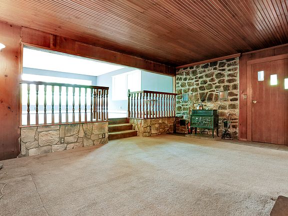 A stone and wood house in the Garrison School District with character and space. Enter in to a large multi purpose room, to the right and a few steps up is the living room with walls of windows, the master bedroom and full bathroom. Also on this level is the dining room, featuring the original woody pine walls, eat in kitchen and glass doors to the deck. The most used rooms in many homes,the dining room and kitchen are open to one another, allowing family and friends to gather together. The three season porch, next to the kitchen adds an additional entertaining area Two bedrooms and a full bath complete the first level. Two finished rooms, brand new wall to wall carpeting on the lower level, with access out to the yard and gardens. Beautiful rocks and lawn and a level, expansive yard. Garden, play soccer or relax in privacy. Great memories and experiences were enjoyed here. Now 334 Dennytown Rd. is available for new adventures. Put your design and creativity to make it your own.