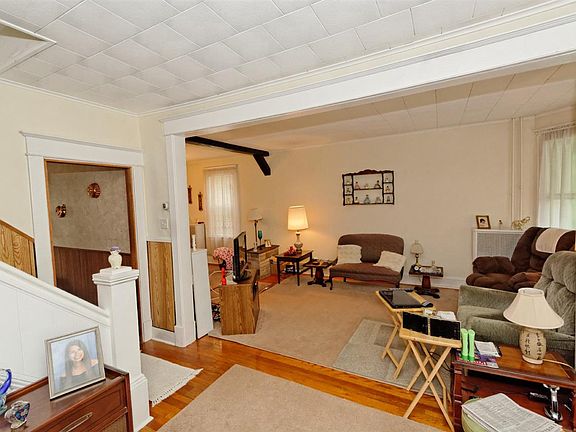 Well maintained 3 bedroom, 1.5 bath Cottage with hardwood floors and first floor laundry and half bath. Inviting large enclosed front porch and foyer. Eat In kitchen with large wall pantry. Open living room with beamed ceiling to formal dining room. 2nd floor offers 3 bedrooms and full bath with also a large enclosed sitting porch being used as additional closet and dressing area. Rear sitting deck and back yard is fenced in and private and has an over-sized one car garage with workshop area.