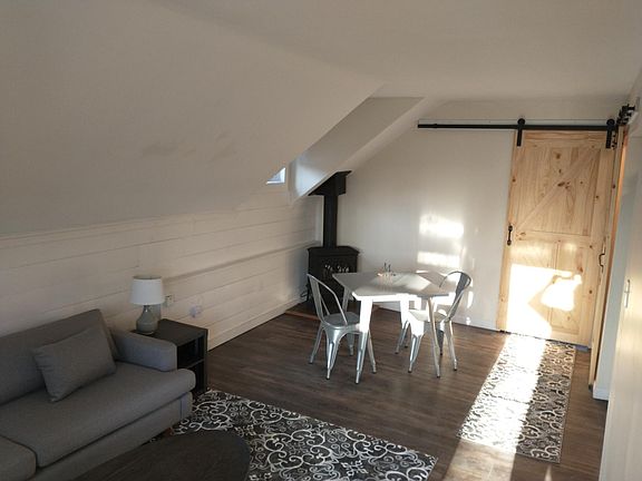Freshly renovated large 1 bedroom apartment with modern appliances, gas fireplace, LVT Vinyl plank flooring through out except tile bathroom. Bedroom @ 12 x 18 feet with closet. New King bed and mattress and dresser nightstand. Living dining area @ 10 x 20 with sofa coffee table end table and dinette set. Kitchen @ 8 x 8 with newer Fridge and gas range and new dishwasher SS sink and cabinets. Bathroom @ 5 x8 not including 3 foot shower. New vanity and all fixtures. Large walk in closet for storage etc. . Off street parking lot, plowing, mowing and dumpster provided. Private yard and on site laundry room. Efficient propane heat. All LED lighting. Insulation upgraded and a/c window units provided. NO SMOKING IN UNITS!! Management on site all tenants have been screened for criminal records Furnished with new furniture and area rugs. Off street parking with private yard Water and septic provided on private system with water softener in use. Literally minutes from 93 for that commute and access to Concord with out the people. References and background check mandatory! Unit can be rented unfurnished without utilities.