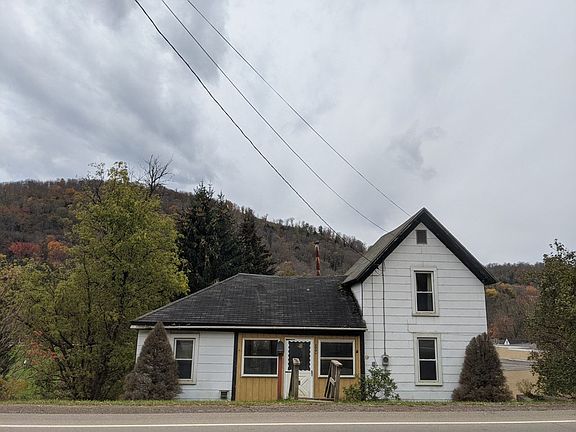 Older home with potential. Buyer will be responsible for UGI & West Penn Power meter hookup along with Borough water & sewer. Home water system has been drained down. Property for sale in it's current state, "AS IS". KItchen, living rm, dining rm w/back deck access and full bathroom/laundry rm down stairs. Full basement w/walk out (outside access only) Upstairs has 2 bedroom which you walk through the first to get to the second and plenty of side attic storage. Off street parking along rt 6 for 2 vehicles. Home is walking distance to the High School. Appliances stay with no guarentee as to their status.