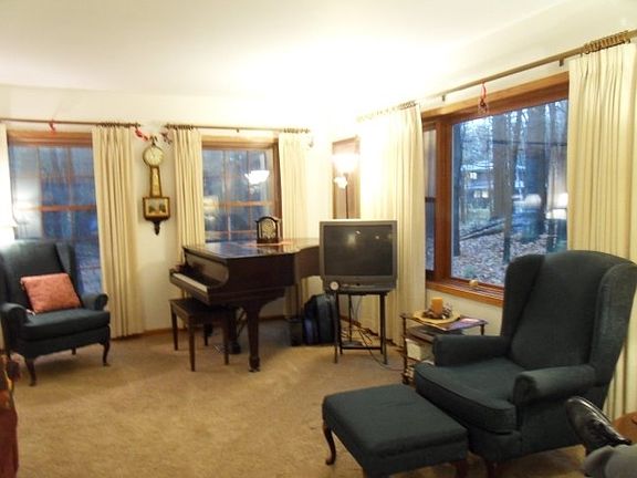 City Convenience Country Feel! This 3 to 4 bedroom Cape Cod features a spacious kitchen with island, open concept living/dining area, main floor laundry, den, deck, 2 car attached garage, and a detached garage with workshop. The home has 2 1/2 baths, a lower level family room and office, and is located on a private wooded lot within walking distance to schools, the YMCA, the hospital and shopping. Well decorated and maintained this is an ideal location at an excellent price.