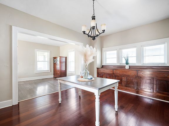 This charming 1,568 SF bungalow is resting on a generous .30 acre lot. The property offers an ideal setting for relaxing on the spacious back deck overlooking a beautiful and expansive green space with mature trees. The large covered front porch provides the perfect space for relaxing conversations on the included wooden swing. Inside, the home offers 2 main level bedrooms connected by a Jack and Jill bathroom, plus a large third bedroom upstairs. The main level includes living and dining rooms with original built-ins, and large laundry with exterior access. The large kitchen includes updated tile backsplash, gas range, refrigerator, microwave, and window treatments. The basement and detached 2 car garage allow for plenty of additional storage options.