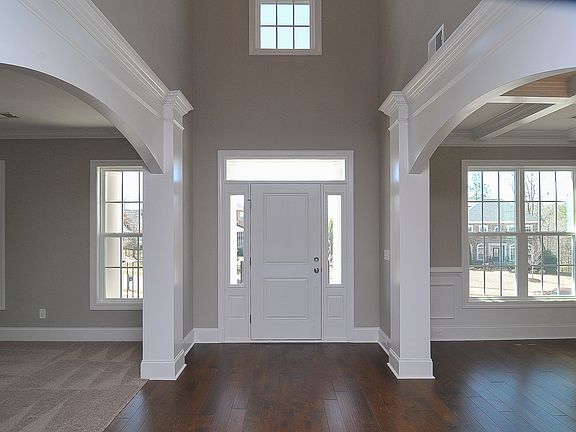 The Rutledge, Come home and relax on your charming balcony in this five bedroom, four-and-one-half bath home which includes bonus room and a three-car garage. Open floor plan with large great room and cozy gas fireplace. Fall in love with the gourmet kitchen featuring built in microwave oven and gas cooktop with beautiful stainless steel hood. Master suite offers three walk-in closets, private luxury bath, deep soaking tub and separate shower. HUGE guest suite on main floor with private bath and walk-in closet. Formal living, formal dining room with coffered ceilings and detailed molding. Covered porch, full yard irrigation, 9-foot ceilings on both floors and blue tooth speakers in kitchen.