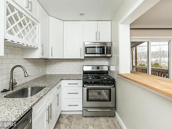 Must see this beautiful WATER VIEW Townhome. ALL NEW! Roof, kitchen cabinets, SS appliances, granite counter tops, butcher block breakfast bar, and windows. Gleaming hardwood floors throughout w/ neutral paint. Fully finished lower level w/ new carpet & full bath. Gorgeous water views from the over sized cover deck complete with a rear parking pad. One year AHS warranty included.