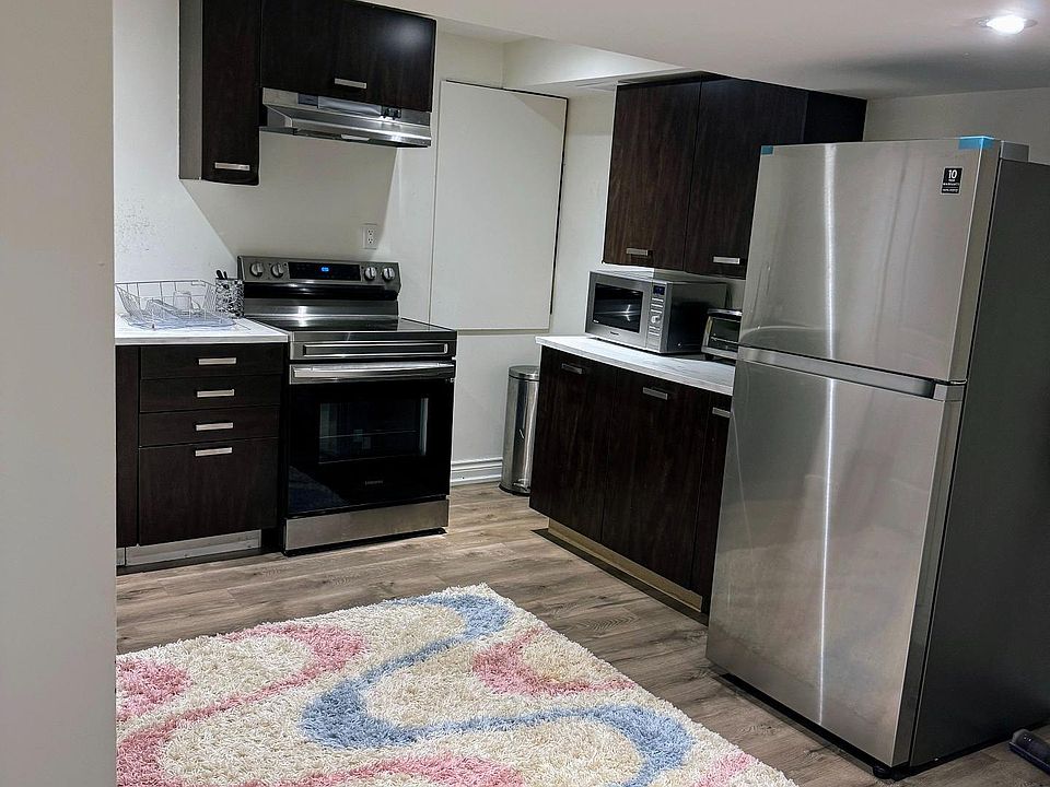 Charming One-Bedroom Basement Apartment for Lease Move-In Ready! Welcome to this cozy and private one-bedroom basement apartment located in a quiet, family-friendly neighborhood in Newmarket. Perfect for a single professional or a couple, this inviting space offers comfort, convenience, and affordability. Features: Spacious bedroom with large closet. Open-concept living/dining area with Laminate flooring, Modern kitchenette with ample cabinet space Clean and well-maintained 3-piece bathroom Private entrance for added privacy. Shared laundry facilities available. One parking spot included. Location Highlights: Minutes from GO station, Highway 404, and local shops. Close to parks, trails, and other outdoor amenities Quiet residential area with friendly neighbours. Available immediately. First and last month's rent required.