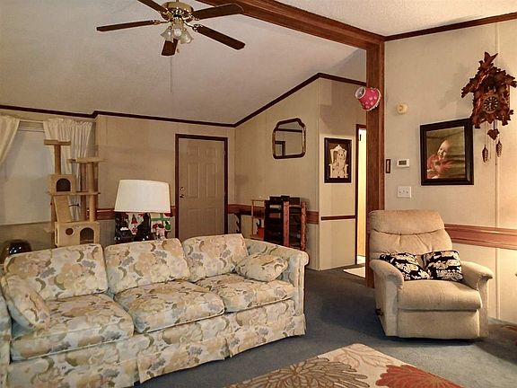 Country Home with 7 acres! Well maintained, brick underpinned DWMH in rural cr setting bordered by creek. Level, pasture land for yard, great for animals or large garden space. Home offers 3 Bedroom split floor plan with master bed and bath. Wooden deck on back of house is great for grilling and outdoor living. Large 20' x 16' outbuilding with power easily used for workshop, storage, lawnmowers, yard equipment or small tractor. Metal carport and concrete driveway make for easy country living.