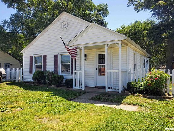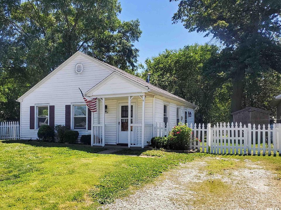 Great curb appeal with white picket fence! Spacious living room with hardwood floors and built in book shelf, main floor laundry and kitchen with pantry and door leading out to the backyard with shed. New roof shingles in 2020. Welcome home! Appliances stay but sold "AS IS". Room sizes and square footage are estimated, not guaranteed to be correct. SQFT. per Tazewell County records.