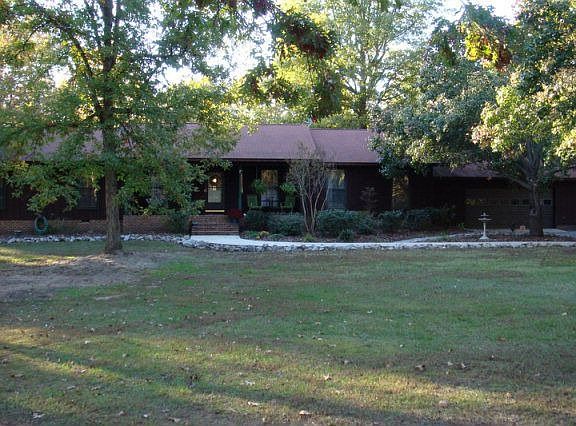 -Ranch styling w/3BR, 3B, living, dining & bonus rooms & attached double garage. All located on 2.86 acres with lots of nice large hardwood trees. Home has separate laundry room, gas log fireplace (no propane tank) covered back porch & heat pump 2011. Another plus is also the detached double garage/shop 32x28 and tall shelter 52x32x1. Home Warranty provided.