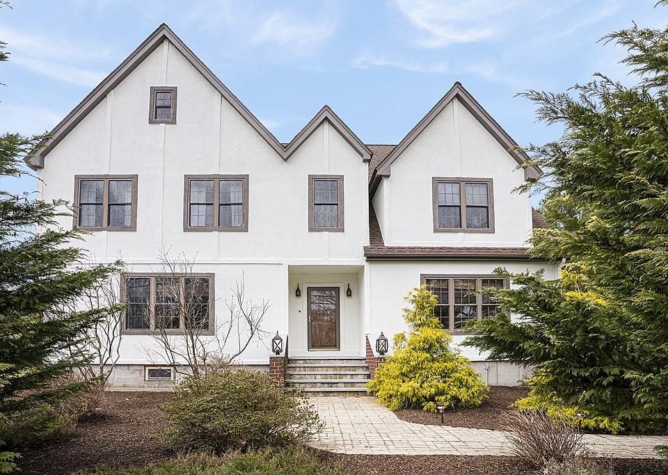 This 3900 square foot sprawling 3-4 bedroom custom Tudor home features hardwood flooring throughout, beautiful architecture & an open floor plan, great for entertaining. Rebuilt from foundation up in 06. 1st floor features a custom kitchen with cathedral ceilings and exposed beams, a brand new bathroom with a custom European shower, and a beautiful sunroom that leads you to the patio and inground heated pool encompassed by stunning stonework, as well as a 1st floor laundry room. Upstairs you will find an oversized master bedroom with cathedral ceilings, and walk in closet. There are two additional bedrooms and a large bathroom with a tile shower and clawfoot soaking tub. The third floor features an office/library space with custom built ins and an additional room for guests. This home has a whole house water filtration system, central air, 2 car garage, 2 story lofted shed, professional landscaping, seller owned solar panels, stunning stonewalls surrounding the property & so much more
