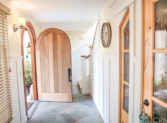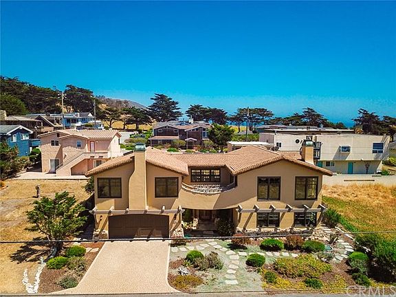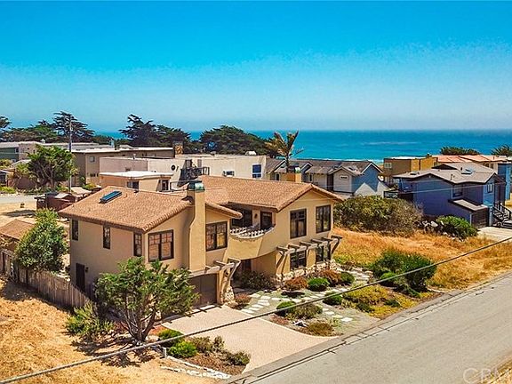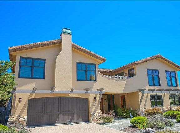 Step into the creation of this Storybook home where cottage style elegance weaves its way from the charming rolled roof above to the stone & wood floors below. There are touches of stained glass, abbey styled design elements, Quartzite stone floors and thresholds, wood floors of natural walnut, Kolbe & Kolbe wood windows, & marble counters caressing custom cabinetry. Fireplaces and ocean/sunset views are found in the kitchen, living area and two of the three bedrooms. The open floor plan is light and bright w/numerous windows and skylights, and vaulted ceilings. The master bedroom is on the same level as the living area for easy living. Downstairs are two more bedrooms, laundry room, walk-in wine cellar, and oversized two car garage. High end materials and appliances were used throughout; Wolf range, Sub-zero fridge, Uline wine fridge, antique chandeliers, doors of knotty Alder, and a custom built arched front door of Merbau. The kitchen has an eating bar & separate copper topped Espresso/coffee bar. This incredible home by the sea is a short distance to the water's edge and the Fiscalini ranch boardwalk. It is located on a triple, ocean view, level lot. Outside is a large deck off the kitchen, patios, detached cottage Art Studio, built-in BBQ, fenced yard for pets and mature gardens watered by a 1000 gallon cistern that captures natural drainage.This is a dream home, a home of warmth and character,infused with details at every turn.Custom home built by Tina Marie Humphrey.