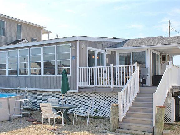 Charming waterfront home in Tuckerton Beach! This updated ranch home is 840 sq ft featuring a 24 x 12 sunroom overlooking the lagoon. The interior and exterior of the home have recently been painted. Newer roof, flooring, kitchen and bath. 50 ft of vinyl bulkhead, dock and fence. The AC wall unit and gas heater wall unit are less than 10 years old. The sunroom also features a beautiful gas fireplace. Sellers recently purchased and installed an easy set Intex pool that comes with the home. They will also remove it from the property if it is not desired.