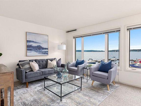 Enjoy million dollar views and lake-side living w/ water lapping just beneath your window! Mesmerizing Lake Washington, Mt. Rainier/Baker views! Dip your toes or launch your kayak from the dock or tie up at the guest moorage. Two large bedrooms, in unit laundry, generously-sized living & dining areas make this an exceptional home and investment. (No rental cap). Steps to Leschi Marina & Market, Starbucks, Meet the Moon & Daniels. Secured building with garage parking and dedicated storage. No steps to unit! Minutes to Seattle Downtown and Eastside while enjoying the tranquility of lakeside living. Come see the view for yourself and fall in love!