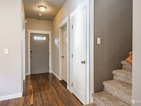 A great opportunity to purchase this 4 bedroom, 2.25 bath home in desirable Digby Heights neighborhood. Recently updated with new paint and carpet the home features open concept kitchen/dining and living room with 1/2 bath downstairs for guests. The main level 4th bedroom could be used for an office as well. Upstairs is the primary suite with bathroom and two more bedrooms featuring a Jack and Jill full bathroom between them. Mountain/sound views out the front of the upstairs. Nice corner lot, private backyard, w/ stamped concrete driveway and fully fenced large back yard.