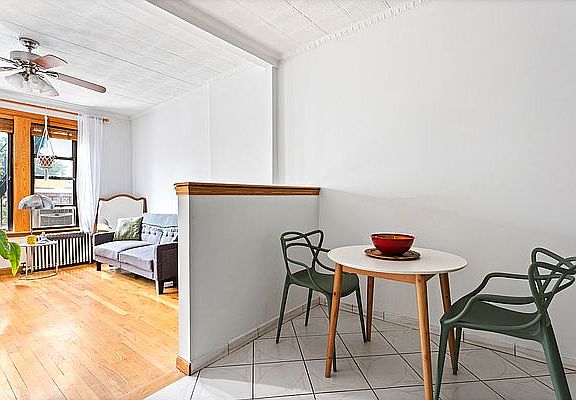 Send all inquiries via this portal. Please don't call or text. Thank you. Welcome to this sunny 3-rd floor apartment boasting pre-war character with many original details! This home features high ceilings with a ceiling fan, a large living room with a separate dining area, and a spacious bathroom with an oversized window. Both bedrooms provide double closets. The second bedroom is perfect for being set up as a Home Office, even though it fits a Queen-size bed in addition to the primary bedroom. Perfectly situated on a quiet, tree-lined street, this prime Williamsburg area offers all you could want, including an abundance of excellent restaurants, bars, coffee shops, bakeries, organic groceries, and specialty shops. McCarren Park is just five blocks away! Three blocks to L-train /G-train at Lorimer Av. *Heat and hot water are included.