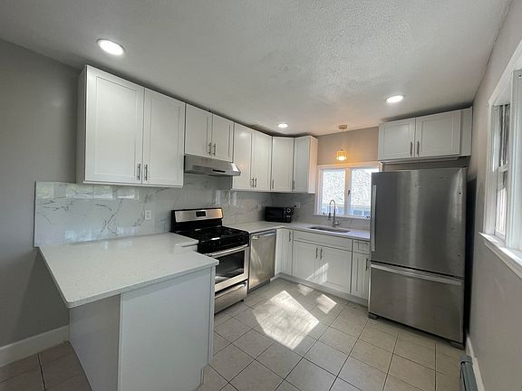 Available now! Check out this completely renovated three-bedroom apartment in Newtonville. This unit is located on the third (top) level, of this meticulously maintained three-family home. Stunning new kitchen featuring a peninsula styled island, providing countertop seating. Along with updates such as: quartz countertops, new cabinetry and stainless steel appliances (vent hood/gas cooking range). Additional areas of the house include: a large living room upon entry, plus a separate dining room that could be utilized as a great home office. Walk-in laundry room (in unit) with pantry/additional storage. Updated full bathroom- new vanity! Private front balcony overlooking the property's common outdoor space and quiet neighborhood. Two off-street parking spots provided. A small pet would be considered case by case! In close proximity to public transportation, major highway access, public/private schools, and more! Owner pays for cold water & landscaping. Tenant(s) pay for electricity, gas, & snow removal on their parking spots.