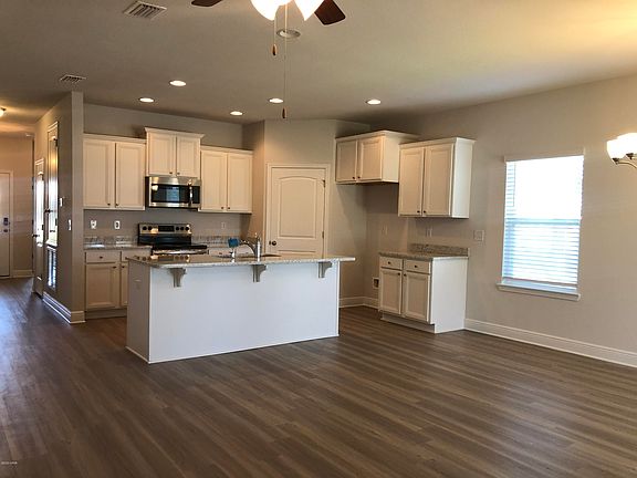 Kennedy plan as an open kitchen has granite countertops and island with undermount stainless steel sink and dishwasher.Additional appliances include a microwave and smooth top range. Vinyl plank flooring throughout and carpet in the bedrooms. This floor plan is unique in thatoffers a mother-in-law quarters complete with kitchen, bathroom, laundry room and living area. The Master bath has a separate shower and tub, dual sink vanityand walk-in closet. Enjoy afternoons on your covered porch accessible from the master bedroom and dining room.
