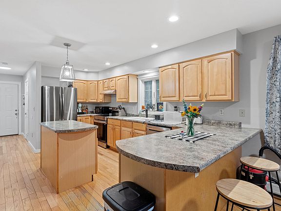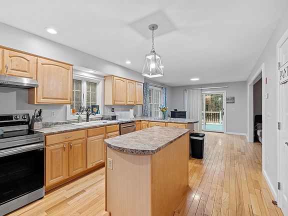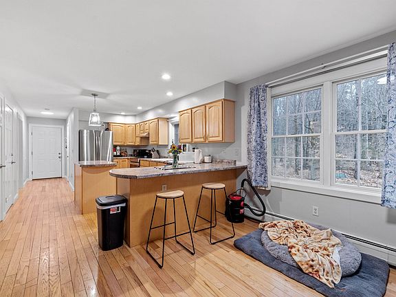 Beautiful Colonial situated on 1.9 acres in Gilmanton, in close proximity to Lakes Region amenities. This property boasts an inviting open floor plan that is flooded with natural light and features hardwood flooring throughout. The spacious kitchen and dining area, complete with a breakfast bar, provide a welcoming space for gatherings. A brick hearth adorns the living room, with a formal dining room adding further elegance to the home. First floor laundry with half bath. Upstairs, the primary suite awaits with a private bath and access to a potential bonus space in the walk-up attic. Two additional spacious bedrooms, and a full bath complement the layout. The full walkout basement offers ample storage. Don’t miss out on this great property!