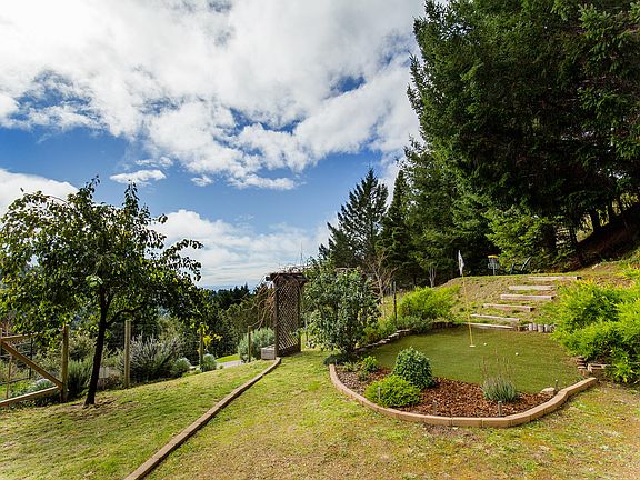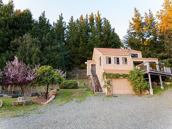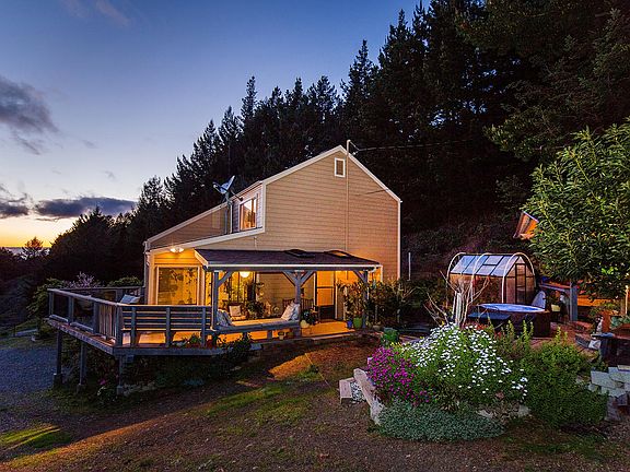 Attention nature lovers. Oasis above the fog with 4 lots. Very private location with a park-like setting and gated entrance. Approximately 2.5 miles to Black Sands Beach, and 3.5 miles to the boat ramp and The Cove Beach. The owners have spent the last 10 years developing this outdoor playground with fruit trees, gorgeous landscaping, a putting green, a covered patio with BBQ, a Softub, and more. The home features a split level floor plan with 2 bedrooms, 2 bathrooms, a den that functions as a 3rd bedroom, a dining room, a sunroom, and a living room. APN # 109-131-066 for the house plus 3 lots, and APN # 109-131-057 for the 4th lot. Square feet from original listing and has not been verified.