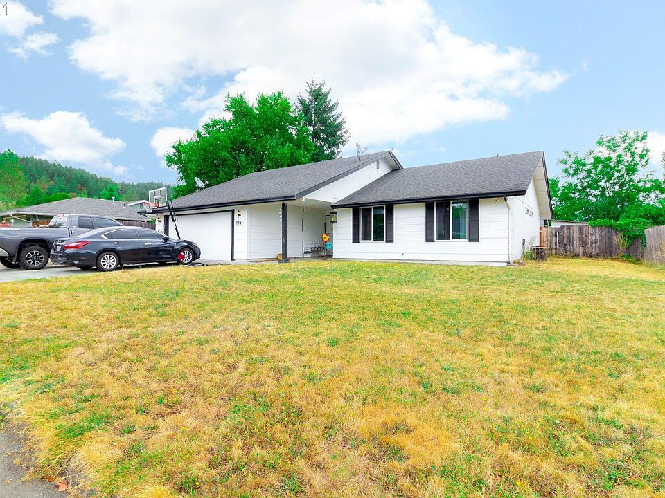 Beautiful one story ranch home on quiet street in Sutherlin. This great home features a large fenced backyard with room for RV parking covered patio with hot tub, outdoor fountain, and tool shed. Inside features updated aminate floors throughout living space, gas fireplace insert, large kitchen with pantry, eating bar, and additional space for an open office/ den area. Open house Saturday Sept 25th @ 12:00 -2:00 PM