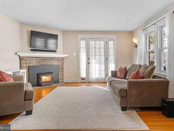 Move-in ready & truly irresistible! Charming brick Twin in the heart of Glenside boasts stunning hardwood floors, built-ins, a BRAND NEW cast iron fireplace insert, a BRAND NEW roof, beautiful kitchen with white cabinetry, a finished basement, & much more! Enter from the covered front porch into the spacious living room captivated by 9’ ceilings & beautiful brick fireplace with stove insert. The dining room is highlighted by 2 large windows. The kitchen WOW’s with full wall pantry, crown molding, recessed lighting, a ceiling fan, gas cooking, built-in microwave, large sink, counterspace lined by windows with backyard views, & convenient access to the deck for easy entertaining. Upstairs, the primary bedroom impresses with coffered ceilings, a ceiling fan & a huge custom wardrobe. The 2nd & 3rd bedrooms have ceiling fans, 2 windows, & closets. A full bathroom shines with hexagon tile floors, new vanity sink, subway tiled walls & subway tile tub/shower. The finished basement is one you CANNOT MISS; large, versatile living space with gas fireplace, built-ins, recessed lighting, exterior backdoor, & a utility room with laundry area with washer/dryer. Enjoy barbeques on the back patio as pets & kids play in the yard! Close to shops, restaurants, Glenside Elementary, & Rte. 309. Additional features: 1-car garage, walk-up floored attic with plenty of storage space, radon mitigation system, sump pump, fresh neutral paint, 6-panel & 2-panel doors, & A 1-YEAR BUYERS HOME WARRANTY! Schedule your showing today!