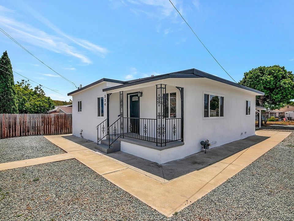 Welcome to this stunning, fully remodeled 3-bedroom home located in the desirable Otay Acres community of Chula Vista. This charming residence offers a peaceful, country-like setting while being conveniently close to freeways, schools, and shopping centers. Step inside and be greeted by the impeccable craftsmanship and attention to detail evident throughout the home. The recent remodel includes a brand new roof, providing both aesthetic appeal and peace of mind. The house has been tastefully outfitted with the newest style lighting, creating a warm and inviting ambiance. The kitchen has been transformed into a culinary masterpiece with new cabinets and sleek quartz countertops. The addition of a new sink and stainless steel appliances adds a touch of modern elegance, making this kitchen a dream for any chef or cooking enthusiast. The upgrades continue throughout the home, with new windows allowing natural light to flood the space. The flooring has been updated, featuring beautiful new materials that perfectly complement the overall aesthetic. In the bedrooms, new carpeting has been installed, ensuring a cozy and comfortable atmosphere. The bathroom has undergone a complete transformation, with a fully remodeled design featuring a new tiled shower enclosure, a new tub, and a new toilet. The fixtures and cabinets have been replaced, adding both style and functionality to this space. Situated on a generous quarter-acre lot, this property offers endless possibilities. Whether you envision an additional dwelling unit (ADU), a space for your RV or boat, or the convenience of park