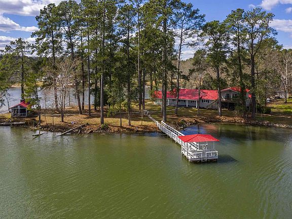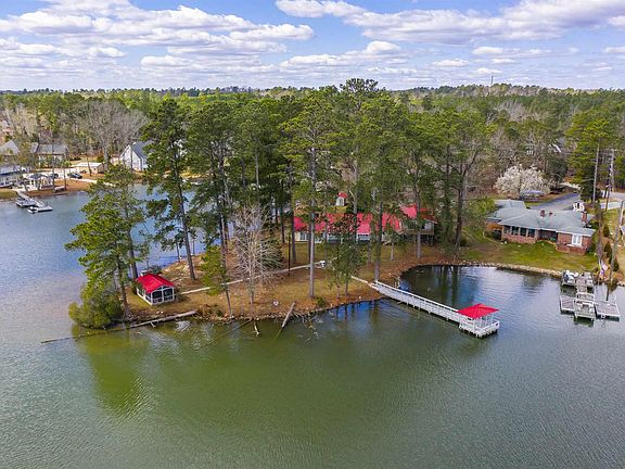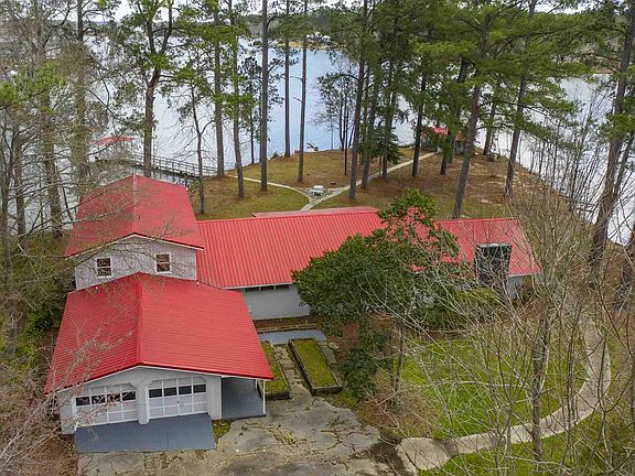 Water, water everywhere! Just over 600' of water frontage w/water on 3 sides of the property, beautiful views. The home features updated kitchen w/stainless appliances, granite counter tops, tiled back splash, new metal roof, hardwood floors, large Sunroom w/fireplace, 3 bedrooms on the main level, area for workshop & storage, party hut w/fireplace overlooking the lake.