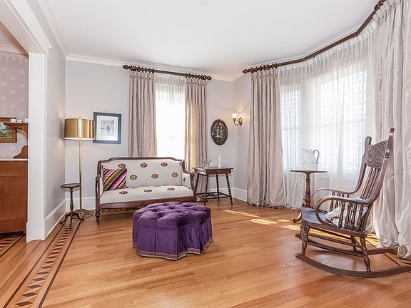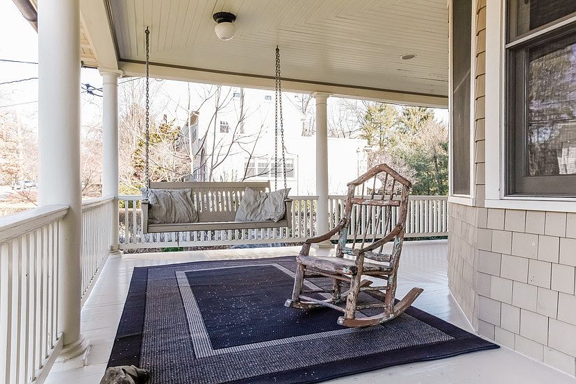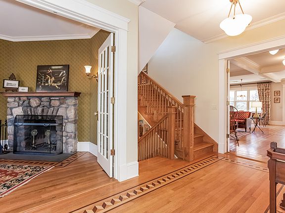 Every amenity has been included with acute attention to detail in the aesthetics of this historic home completely rebuilt in 2003. Front porch wraps around to deck overlooking private yard. Entry foyer, living room, den with stone fireplace and a formal dining room mesh flawlessly with rear open plan of custom kitchen and breakfast and family areas with second fireplace. Four bedrooms and two full baths on second floor, including master bedroom with en suite marble bath with two sinks, claw foot tub and steam shower. three further bedrooms on top floor with additional full bath. Finished basement (not counted in square footage) includes media room/rec space with tile, radiant-heated floor, laundry room, climate-controlled wine cellar (expandable 750 bottle capacity), half bath and mud room vestibule opening to exterior covered terrace defined by stone archways connecting to yard. three-zone heating andamp; central AC. Detached original barn w/2-car parking and walk-up second floor.