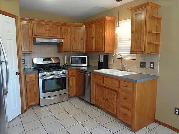 This 3 bed 2 bath home has been well maintained and has tons of upgrades including fresh paint, hot water heater, new garage door, STORM SHELTER, full guttering and turbines, R45 attic insulation, carpet, new entry and bedroom doors. The home comes with 1 living area and 1 office. Master suite opposite 2 other bedrooms. Refrigerator and garage door w/wifi connection. New countertops and sink in kitchen, backsplash has been resurfaced, new bathroom countertops and faucets, new toilet in Master bath, new ceiling fan in front room, 5 burner gas range with new vent hood, large pantry. Swing set will stay if wanted.