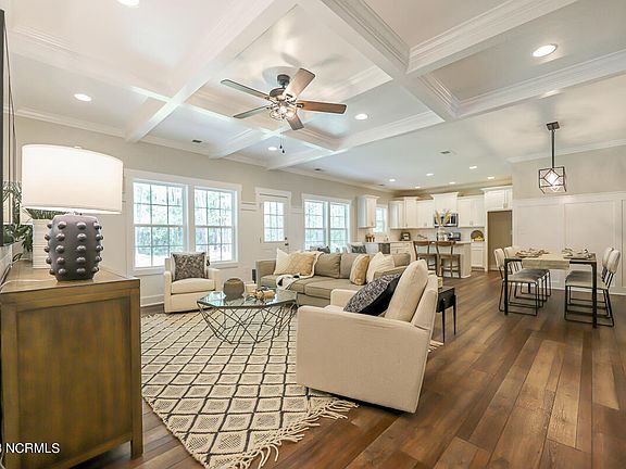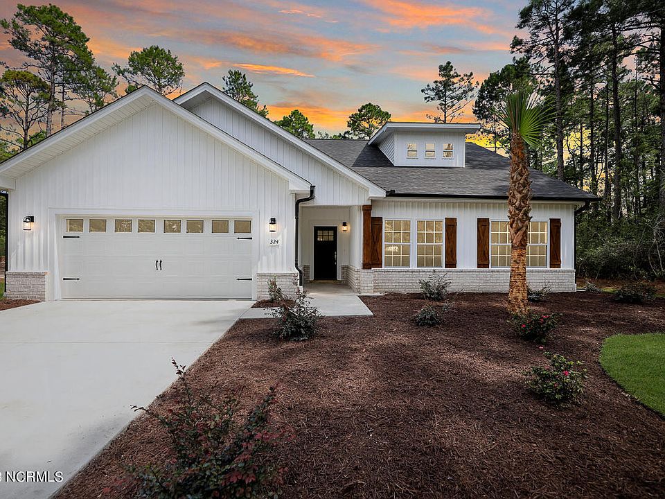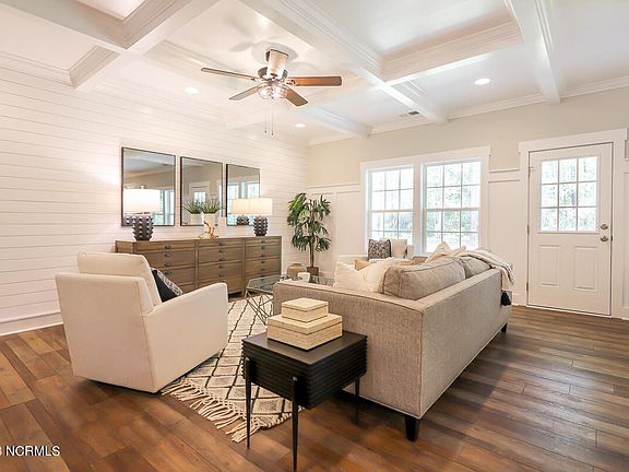 NEW CONSTRUCTION: Outstanding quality with craftsmen style finishes and an open concept! Timeless features such as a coffered ceiling, wainscoting, crown molding, recessed lighting, luxury vinyl plank flooring, 9' ceilings. Inviting entry with a drop station; Living & dining areas are the ideal size with relaxed coastal colors and decorative lighting. Attractive kitchen with stainless appliances (refrigerator included), 36'' cabinetry, soft closet drawers, kitchen island, quartz counters, large pantry with wood shelving. Master suite with two walk-in closets, wood shelving; master bath with double vanity, walk-in tile shower. Offering privacy with a split floor plan for the guest rooms; guest bath with a tiled shower. Two car garage & paved driveway, an upgraded landscaping package, partial stone front, board & batten siding & shutters, attic storage. Large back porch making it easy to enjoy the outdoors. Mature landscaping throughout this neighborhood - clubhouse, pool, tennis courts and playground. An easy drive (5-15 minutes to breathtaking Sunset Beach, multiple boat ramps, multiple golf courses, waterfront park, great selection of seafood restaurants, summer markets and concerts.