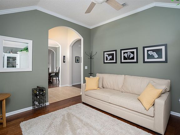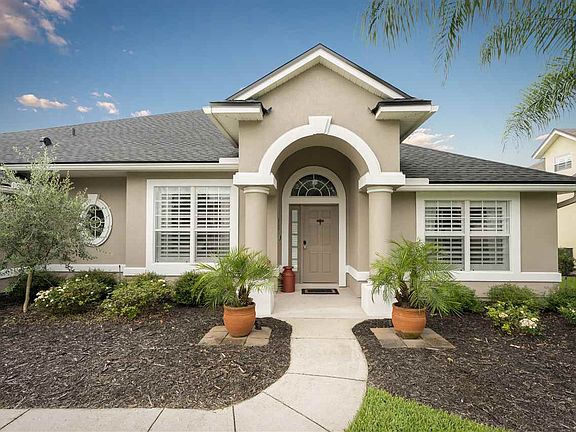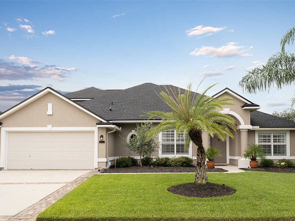 This gorgeous lakefront home offers 5 full bedrooms plus a bonus room & over 2900 square feet of living space. Meticulously maintained inside & out, the roof is new & the interior & exterior have been freshly painted. Inside you'll find decorative details throughout such as arched openings, vaulted & tray ceilings, crown molding, wainscoting & plantation shutters throughout. The backyard is a true outdoor oasis with lakefront views, an extended paver patio, fire pit, & lush tropical landscaping. The open split floor plan is ideal for entertaining indoors or out. The oversized kitchen features a wrap-around island breakfast bar, stainless steel appliances, a double oven, 42'' cabinetry, a walk-in pantry & built-in wine fridge. The living room is complete with a vaulted ceiling, gas fireplace & a stunning wall of windows. The spacious Master suite showcases wood flooring, a double tray ceiling & wrap-around windows. Complete with his & hers walk-in closets the master bath offers split vanities a tiled walk-in shower & garden tub. Upstairs finds a bonus room/theater room plus an additional bedroom & a full bath. You'll find ample storage throughout, even the garage includes cabinetry. Located in the heart of World Golf Village in Murabella you'll find resort-style amenities like a community pool w/waterslide, tennis courts, newly renovated fitness center, clubhouse, recreational sports fields, jogging paths & more. Zoned for A rated schools & located only minutes from I-95 you're surrounded by the conveniences of shops, restaurants & grocery stores right outside of the neighborhood. This move-in ready home is one you won't want to miss. 1 yr home warranty included.