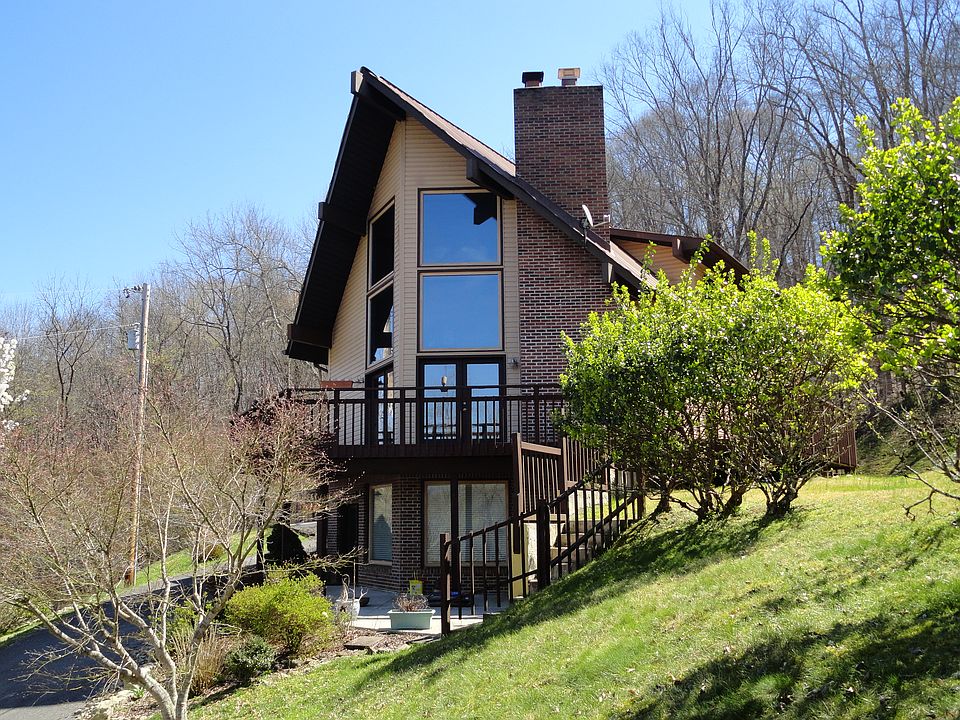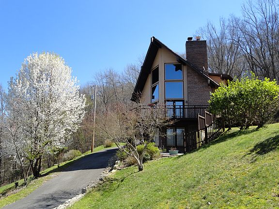Resting high on a hill overlooking the Clinch River sits 334 River Road. Just a stone's throw from Norris Dam and state park, this A-frame with is soaring windows takes advantage of mountain and water views and all the beauty nature has to offer. Hardwood floors, beams, a brick fireplace all highlight the great room with loft area above. Main level also houses a bedroom and private bath. Master suite upstairs features cathedral ceiling, jetted tub in en suite bath plus separate shower, walk-in closet with lovely built-ins. Finished lower level boasts a large family room w/2nd fireplace, 3rd bedroom, office, and another full bath. Parking and storage available in detached 2 car garage.