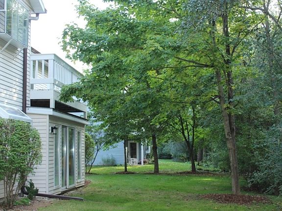 Embrace your inner HGTV persona as seller will give $2500 closing credit for wallpaper removal. Beautiful layout with 2 great size bdrs / 2 ba PLUS den with built in desk/ shelving and wet bar. MBR has WIC and private bath. Relax outdoors on your oversized patio overlooking the woods or stay cozy indoors this winter in front of your natural fireplace with marble surround. In unit laundry, formal dining room, new patio doors/kitchen greenhouse window. Pets allowed. Move now and avoid shoveling this winter!