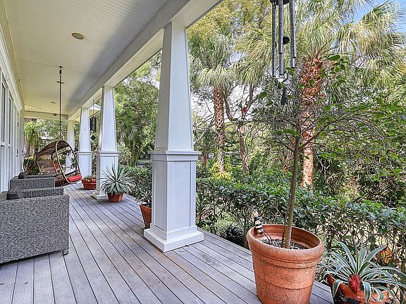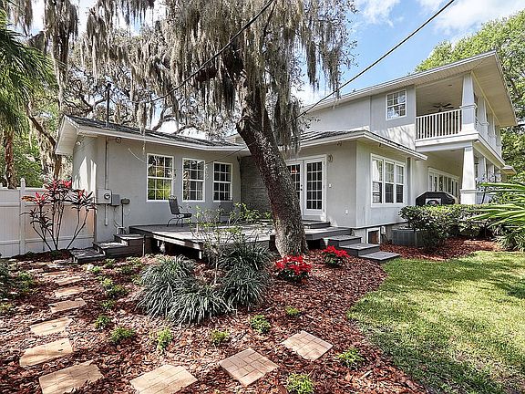 This Key West inspired home tucked away in a quiet corner of desirable Belleair had been totally renovated in 2007 and updated in 2010. French doors open on the first and second floors to sprawling covered verandas. Arrange the living space to suit your family's needs with abundant space for sitting and dining areas. The open kitchen area highlights granite countertops, a large breakfast bar, copious cabinetry, five burner natural gas cooktop and double wall ovens. The spacious office/study/studio with double French doors and plantation shutters offers privacy. The first floor master suite boasts a private patio, over-sized walk-in closet, and a bath room with dual sink vanity, tub and separate glass-enclosed shower. The second floor features a loft area, three Queen-sized bedrooms and two full baths. Additional amenities include hardwood floors, tankless hot water heaters, three zone A/C units, natural gas BBQ hook-up, laundry room, ceiling fans in all living and dining areas, impact windows and French doors, custom designed stained glass front door with keyless entry, landscape lighting, a three car garage with ample storage and grounds with room for a pool.
