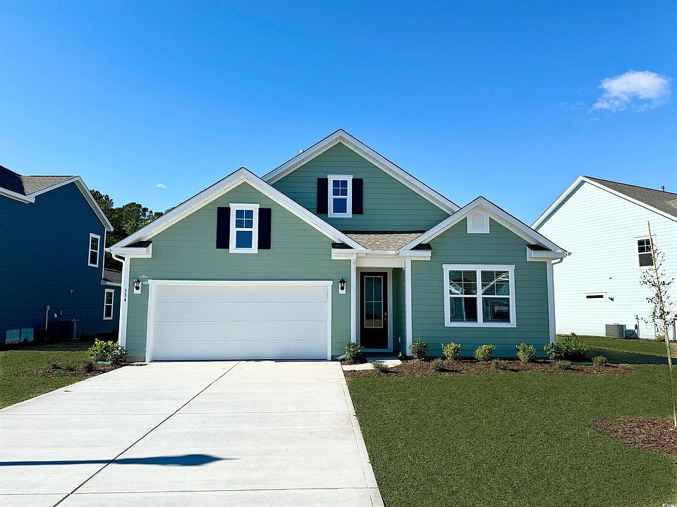 Waterbridge community is in the sought-after Carolina Forest area. Minutes from grocery stores, shopping centers, golf courses, attractions and the beach! The community is filled with resort-style amenities that make it hard to leave home. This gated community features a clubhouse, the “largest residential swimming pool in SC”, fitness center, tennis, pickleball, basketball, volleyball, and bocce ball, a lake and boat launch! The Darby offers a tall entry door with glass, a split bedroom floorplan, and an open concept kitchen, living, and dining area perfect for entertaining! The kitchen is the star of the home, with quartz countertops, 36" cabinetry, stainless appliances and a gas range. There is also a flex room on the main level which would be great for a home office or formal dining room. The primary bedroom suite is a must see with a huge walk-in closet and en suite bath with two large separate vanities and a 5' shower. This home also features a rear covered porch offering an ideal space for outdoor enjoyment along with the optional second floor that offers a private bedroom, full bathroom, game room space, and additional storage! *Photos are of a similar Darby home. (Home and community information, including pricing, included features, terms, availability and amenities, are subject to change prior to sale at any time without notice or obligation. Square footages are approximate. Pictures, photographs, colors, features, and sizes are for illustration purposes only and will vary from the homes as built. Equal housing opportunity builder.)