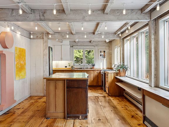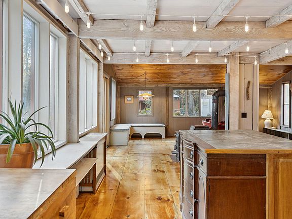 This charming 2 bed and 2 full bath home features glistening pumpkin pine floors in its open floor plan with loads of natural light that brings in a comfort and warmness throughout the year. The woodstove will heat your home while sitting in the dining room nook sipping a warm drink watching the snow fall and wildlife trek through your yard.