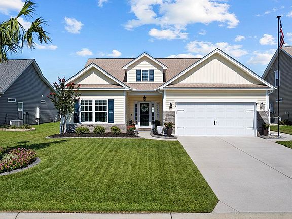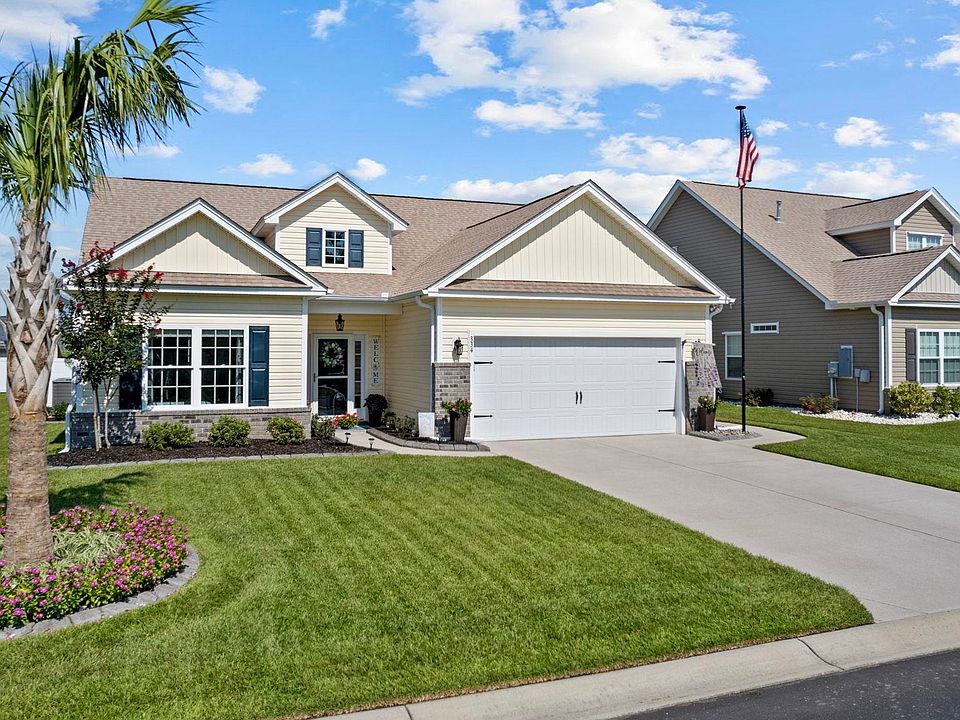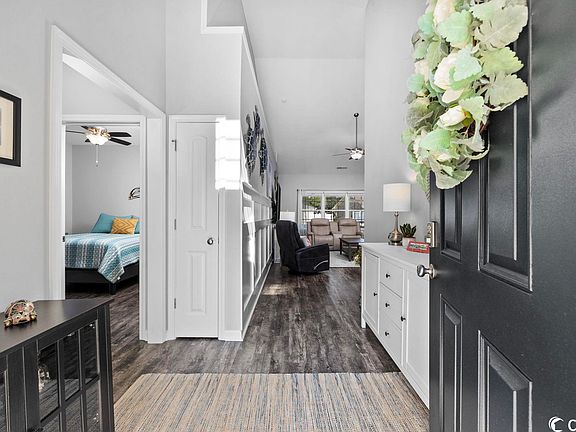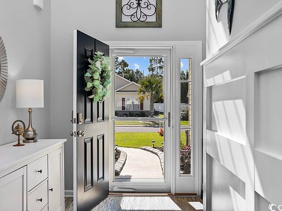 Golf Cart ride to the beach! Welcome to this stunning home built in 2020, a true gem nestled in a prime location under 2 miles from the beach. Boasting 3 BRs, 2 BAs, and a versatile flex room ideal for an office, this home is so immaculate it’s truly ready to move right into. The entire interior has been freshly painted with top-of-the-line Sherwin Williams paint.  Step inside and admire the upgraded luxury vinyl plank flooring that flows seamlessly through all living areas, complemented by vaulted ceilings and a dramatic dormer in the entryway that floods the space with natural light. The hallway and great room showcase beautiful board and batten, adding a touch of elegance. The kitchen is a chef's dream, featuring semi-gloss subway tile in Desert Gray, granite countertops, stainless steel appliances, a walk-in corner pantry, and upgraded stained cabinetry with crown molding. The main-level owner's bedroom boasts a tray ceiling and leads to the owner's master bath with a walk-in shower with glass shower door, linen closet, and double-bowled vanity. Additional highlights include comfort-height toilets in both bathrooms, blinds throughout, gutters, a 2-car garage with remotes and keypad access, professionally epoxy-sealed concrete exterior walking surfaces including driveway, sidewalk, and garage, and a natural gas tankless water heater. Enjoy the convenience of a whole-house water softener system, Rainbird irrigation system, and a fenced backyard with 4-foot vinyl fencing and 2 gates.  The backyard extends beyond the back fence. The screened porch, also with epoxy concrete seal, and an extended patio in the backyard are perfect for grilling and outdoor enjoyment. This home also offers a 220-circuit electric hookup for a hot tub and access to the neighborhood pool. With countless upgrades and thoughtful features, this home has it all – don't miss out on the opportunity to make it your own!