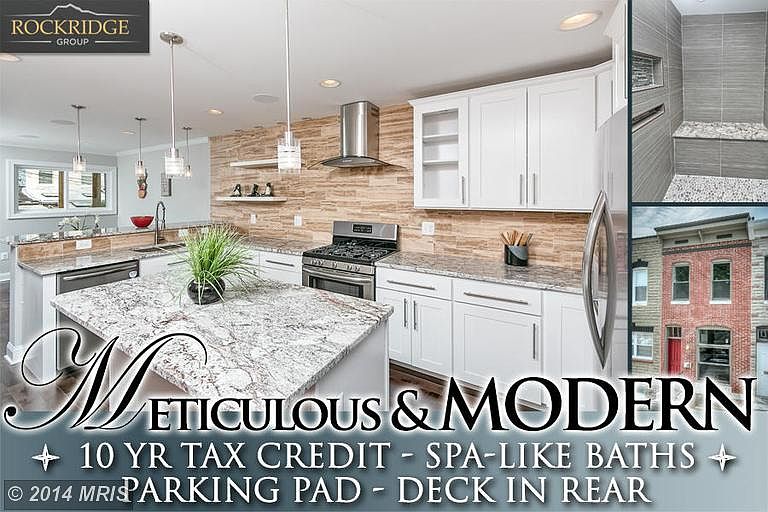 STUNNING ROCKRIDGE GROUP RENOVATION W/ CHAP TAX CREDIT & PARKING - stylish home w/ large 2 story rear addition features hardwood flrs, granite counters, ss appliances, coffered ceilings, audio & island kitchen w/ eat-in breakfast bar great for entertaining. Upper level 2 bedroom suites w/ spa-like baths & large deck off the rear bedroom. Finished lower level w/ 3rd bedroom - tax credit save $$
