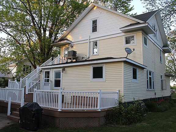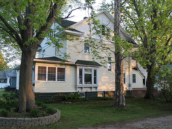 Built for the first mayor of Bronson. Bought in 2000 and been remodeling on and off ever since. Completely updated copper plumbing and electrical systems, all newer windows, siding, roof, insulation. Kitchen remodel, mudroom addition and composite deck about 5 years ago. Large living room with gas fireplace. Hardwood Floors throughout. Second high efficiency furnace with AC unit for the second and third floor to go with steam radiators for main floor. Second Floor has 3 bedrooms with a master bath with laundry. Custom master bath glass block shower with body jets, heated tile floor. Third floor has 2 more bedrooms and bath along with a large living area. 28 x 28 Pole 2 car garage. Second one car garage or carriage house. Situated on 1 and a half lots in town. Comes furnished. Well loved and lived in home.