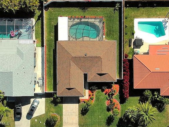 NOT IN FLOOD ZONE! NEW ROOF 2023! ASSESSMENTS PAID IN FULL! Beautiful and Meticulously Maintained, Move-in ready, 3 Bedroom, 3 Bath, POOL home, on CITY WATER and SEWER! Feel Secure in this wonderful home with these Enhancements made to Provide EXCEPTIONAL STORM DURABILITY: in addition to the New Roof- IMPACT WINDOWS and DOORS (2023) NEW ELECTRICAL BOX with Easy Access Generator Hook-Up and Safety Interlock, IMPACT RESISTANT GARAGE DOOR (2021) and UPGRADED FRAME POOL SCREEN ENCLOSURE (2020). For You and your Family's Comfort, Enjoy relaxing on your large Lanai, with your Heated pool (NEW HEAT PUMP -2024) and easy access to the fenced-in backyard (NEW 6' PRIVACY FENCE- 2023). You will enjoy having an extra bathroom, accessible from the pool/yard or home, complete with a shower. The kitchen has been updated with Granite Countertops, Wood Cabinets, Stone and Glass Backsplash, and Stainless Appliances (NEW REFRIGERATOR 2024). The large living area is bright and spacious, with an adjacent FLORIDA ROOM. Additional updates include Laminate Flooring, Newer AC (2019), WiFi controlled Thermostat and WiFi controlled Irrigation system. Conveniently located on a quiet street in the desirable Country Club area, with easy access to both Veterans and Cape Coral Parkways, this home is close to shopping, restaurants, medical, schools, both bridges and everything Cape Coral has to offer.
