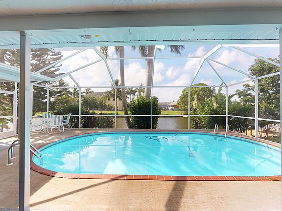 Immaculate 3 bedroom 2 bath 2 car garage gulf access pool home with all assessments paid. This recently updated southern exposure home that is only one bridge to the river, boasts over 2000sf of living area, large eat in kitchen with newer upgraded cabinets and granite countertops, large family room, spacious master bedroom with large closet, updated master bath with vestibule sinks, jetted tub, and granite countertops. Large guest bedrooms, multiple sliders open up to the loads of outdoor living space around the solar heated pool and concrete dock! So many other features that include, hurricane impact glass windows, newer AC, hurricane rated garage door, fireplace, lush landscaping, sprinkler system, fantastic water views, furniture is negotiable, close to restaurants, schools, shopping and so much more!!