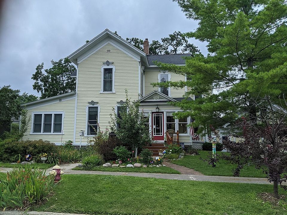 Victorian House with 11 rooms, 10-11 ft. ceilings, all very nicely updated. The perfect house for having family gatherings and entertaining guests in a spacious "wow" main floor. Then upstairs, a large, beautiful, and more comforting living area to settle down in. Large in town double lot, wood-fenced and nicely landscaped to provide advanced privacy. Natural gas steam heat with original radiators (even in attached garage), 10 ft+ ceilings, 8 ft solid core doors. Nearly all updated windows, fabulous fireplace. Grand entry with spiral staircase. Well-made paver brick driveway, and patio in back yard.