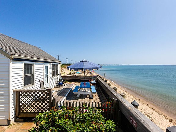 This two bed , one bath corner unit located directly on the Bay , behind a seawall , offers unobstructed views of the entire Outer Cape. Large private deck, parking, great rental income and gorgeous sunsets , this unit is located in the best spot in the well established White Village Condo complex. Offered fully furnished , with AC, this unit is '' turn key'' and ready to rent or take in all that the beauty of living on the beach on Cape Cod offers.