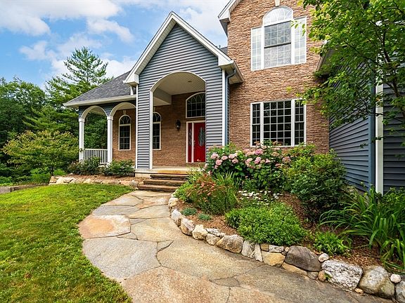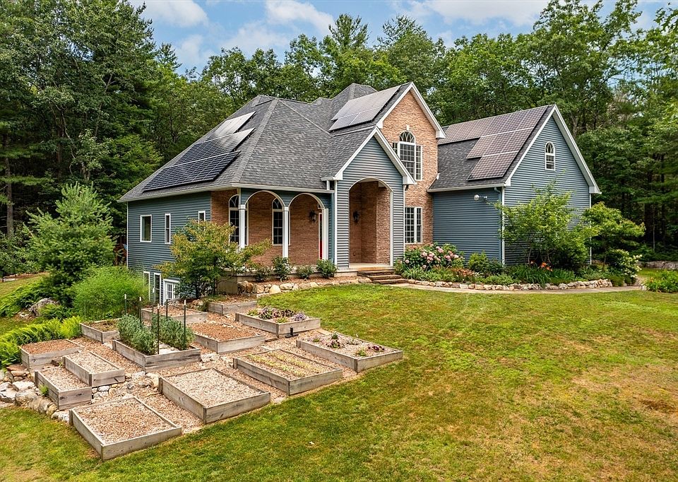 Beautiful modern & efficient home in private Westhampton setting with excellent light. This expansive property features 4 bedrooms, 3 bathrooms & an impressive solar array. Main floor offers 10' ceilings & oversized windows with a tiled foyer and adjacent dining room. Large living room with gas fireplace & French doors to covered back porch. Kitchen w/ hardwood floors, granite countertops & dining area (w/ porch access). Main floor primary bedroom suite w/ jacuzzi tub & walk-in closet. Additional first floor bedroom & 3/4 bath located by the laundry room & garage access. Radiant heat throughout 1st fl & basement. Second floor has wall-to-wall carpet w/ two large bedrooms, full bath & bonus room perfect for a family room or den. Huge walk-out basement framed for finishing w/ French doors & windows, perfect for a workshop. Yard w/ firepit, treehouse & terraced beds for home gardeners. Oversized owned solar w/ great production makes this property an ideal candidate for adding heat pump AC