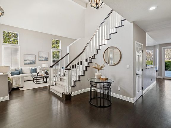 Spectacular 5 bedroom, 3 bathroom home in the highly sought-after Tassajara Ridge community. Step inside to rich hardwood flooring, designer paint, and classic plantation shutters that create a warm and inviting first impression. The thoughtful floor plan features a full bedroom and bathroom with a stall shower on the main level, ideal for guests, extended family, or a private office. Continue into the light-filled, updated kitchen showcasing quartz countertops, stainless steel appliances, and ample prep and storage space, all opening to comfortable living areas designed for both everyday living and entertaining. Upstairs, cozy carpet and spacious bedrooms provide peaceful retreats for everyone. Step outside to a resort-style backyard built for gatherings, complete with a sparkling pool and spa, low-maintenance lawn area, and a generous patio accented with charming bistro lights for relaxing evenings. A three-car garage offers abundant parking and storage. Located near top-rated SRVUSD schools, parks, shopping, dining, and commuter routes, this Tassajara Ridge home blends comfort, style, and convenience. Open houses Saturday 1-31 & Sunday 2-1 from 1-4pm!