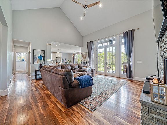 Welcome home to this stunning 8+ acre property! Here you'll find a peaceful oasis of privacy, the perfect place to get away from the hustle and bustle of everyday life. Inside this charming abode, you will be greeted with gorgeous hardwood floors, plenty of natural light streaming in through windows, and upgrades such as stainless steel appliances. Upstairs is a bonus room that could be used for almost anything - an office space? A man cave? A playroom for your little ones? The possibilities are endless! And don't forget about the spacious first floor master bedroom with its beautiful master bathroom. As if all these features weren't enough, outside awaits a front porch and back patio where you can relax or entertain guests while admiring breathtaking views of nature. Don't miss out on this incredible opportunity to own your own piece of paradise!