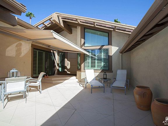 Incredible value for this immaculate Dallas model featuring split master bedrooms plus den. Beautiful golf course setting with water and mountain views. Large private courtyard with electric awning. Cook's kitchen with stainless center island and stainless appliances. Light, bright with soaring ceilings and an open layout. Just a few doors down to the pool and spa. Country club living at its finest with great amenities in the heart of Palm Desert. Close to wonderful dining, shopping and resorts. Stay tuned for additional photos!