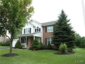 Lovely original owner Westbury 3 bedrooms, 2.5 baths 2 story colonial. Large eat-in kitchen with breakfast bar, planning desk, bump out with a great view of your Fronheiser inground heated pool. 1st. floor family room with floor to ceiling brick hearth with a Napoleon gas insert. Vacation in this glorious backyard with wrap around brick pavers, landscaped, 11.9 X 12 covered deck and vinyl privacy fence. Don't worry about the next power outgaes with your 2 year old natural gas Generac generator with an automatic transfer panel. Full 37.8 X 35 unfinished basement, New H2O heater 07/13. 2nd. floor laundry, inviting master bedroom suite with generous8.6 X 8 walk-in closet, double vanities, soaking tub, with private shower in master bath, all window treatments remain, Anderson high performance windows. Crown moulding & chairail, passive radon system. 2 car garage with side parking pad, 6 X 19 front porch, Home Warranty included, appliances included. Put this home on your showing list! For more info contact Jeffrey Burnatowski at 610-770-9000 ext. 146 or Direct: 610-398-4024. LehighValleyRealty.com