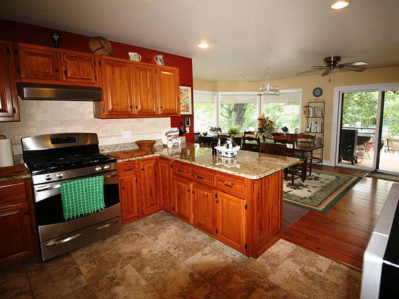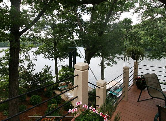Beautiful Lakefront home with amazing views! Walk into your Great Room and feel like your sitting in a glass house. If you love wood, you will love these incredible wide plank heart pine floors and cabinets. The wood came from a cotton mill built in 1891 in Fitzgerald, GA. The cabinets look new and kitchen also features granite countertops, and new stainless appliances. The main level has the Master bedroom, bath, 2nd bedroom, large great room with wood burning fireplace/gas starter, kitchen, dining, laundry room, and half bath. Downstairs has 3rd bedroom, bath, recreation room, large den area and workshop. The exterior is Cedar siding & stone, 2015 Roof, new generator, newly painted.