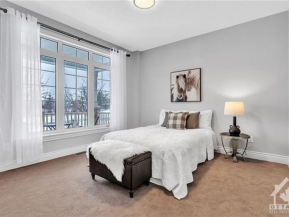 Situated right across from Tucana park, this exquisite with absolute "luxury feel" home offers the most thoughtful floor plan with two bedrooms and 2 full baths and an office on the main floor, along with 2 additional bedrooms upstairs and a versatile loft area for endless possibility uses. When you enter you'll get a sense of grandeur & your eyes will be drawn, through the wide hallway with pristine upgraded birch hardwood past the French doors in the foyer, all the way to the back of the house where you'll find soaring high ceilings & a back wall full of windows from top to bottom. Big kitchen with modern appliances, high end cabinetry and granite countertops over looks the spacious and airy living room with a cozy fireplace. Beautiful aesthetics and architectural design wherever you're standing in this meticulously maintained home. Walking distance to parks, schools, Minto recreation centre, golf & Barrhaven marketplace. See 3D tour & Video. A truly unique home you don't see often.